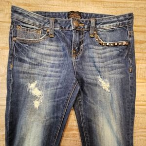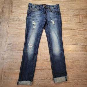 ReRock Express Jeans Womens 4 Dark Blue Skinny Distressed Denim Preppy Normcore