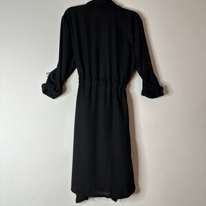 ReVamped Black Flowy Roll Tab Sleeve Tie Waist Waterfall Neck Wrap Dress Small