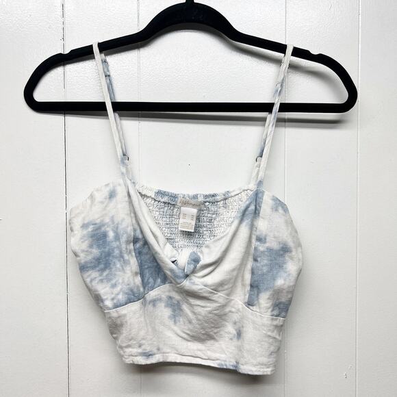 ReVamped Linen Blend Tie Dye Blue & White Cropped Top Size Medium Smocked