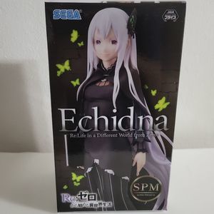 From Sega’s Super Premium Figure line of prize figures comes Echidna from the popular anime series Re:Zero -Starting Life in Another World-. Wearing her familiar, elegant black dress, the Witch of Greed gives a curious smile and holds a book in her hand, showing her thirst for knowledge. She features quality sculpting and paintwork for such an affordable price. Add her to your collection!