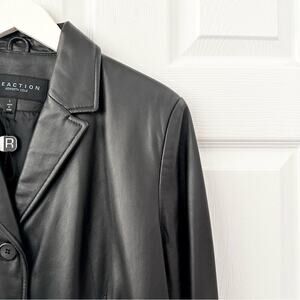 Reaction Kenneth Cole Black Leather Vintage Y2K Button Up Blazer Jacket Large