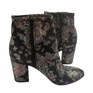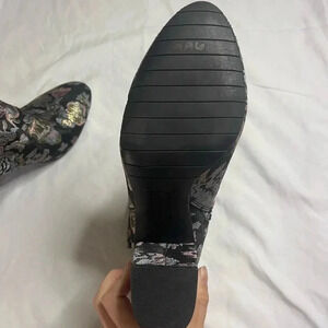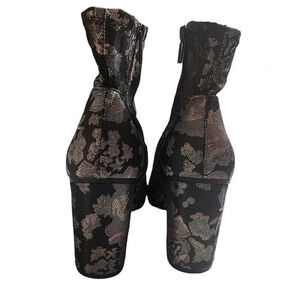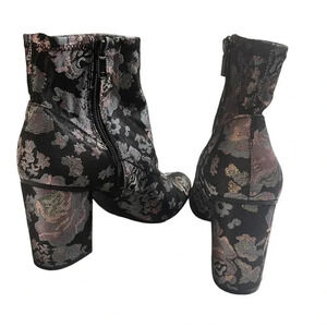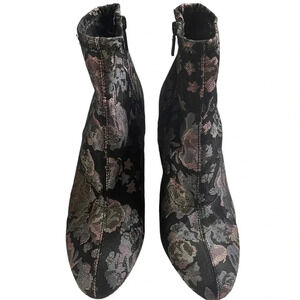 These booties are preloved and in good condition. The insoles are clean and the soles are in good condition with minor wear. The overall bootie has small signs of pulls along the zippers.