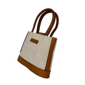 Reaction Kenneth Cole Mini Purse Beige Canvas Leather Trim