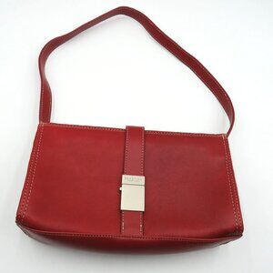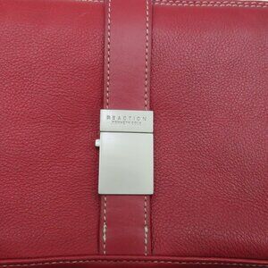 Reaction Kenneth Cole Red Leather Bag Silver Tone Accent White Stitching
