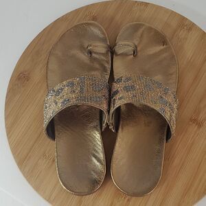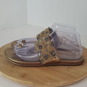 Reaction Kenneth Cole Slim Tricks Bronze Metallic Bling Sandals Women's Size 7.5