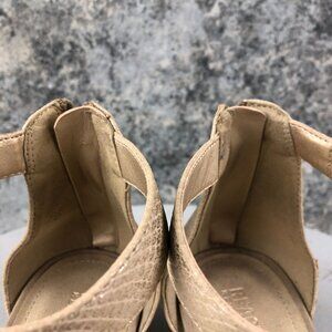 Reaction Kenneth Cole Women's 10M Great Vibe 2 Beige Gold Open Toe Wedge Sandals