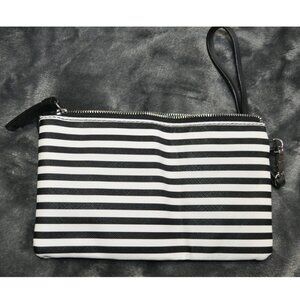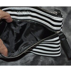 Reaction Kenneth Cole black & white stripe 2 pocket clutch or makeup bag (21G)