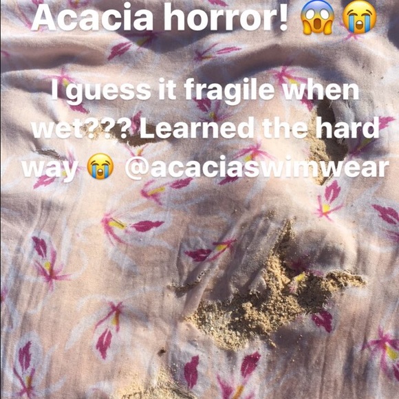 So warning guys! ⚠️ acacia sarongs are very fragile when wet!! I've used this sarong maybe 4 times!!! I just put my hand on the Sarong to get up and it ripped. I'm VERY gentle with all my acacia things especially this sarong. It was my favorite too. Just an FYI