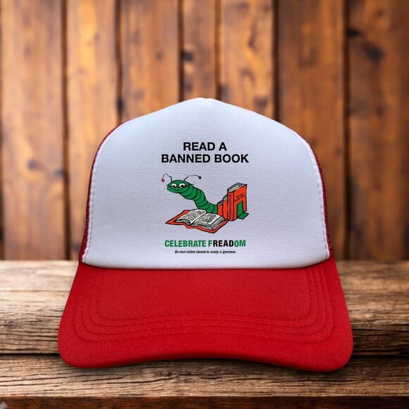 Read Banned Books Mens Trucker Hat Red Snapback Celebrate Freedom Ball Cap