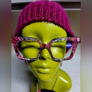Bold pink tortoiseshell frames for a fashionable look. Lightweight construction and full-rim shape create a confident everyday accessory. Pink color adds playful flair to any outfit. Designed for modern style and comfortable wear.