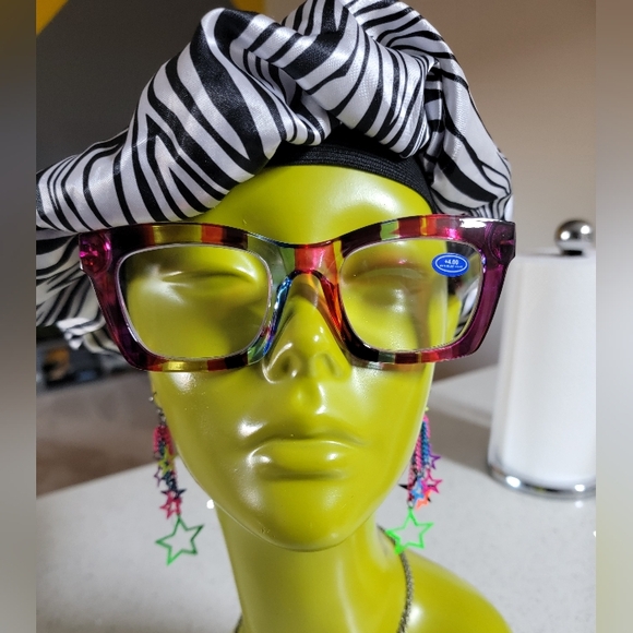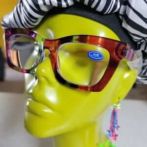 +4.00 multicolor rectangular frames with spring hinge and blue light blocking. Lightweight and vibrant.