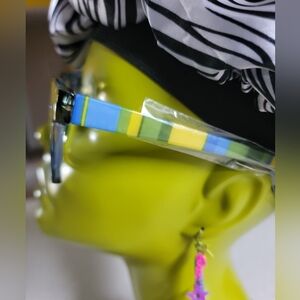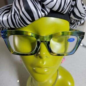 +4.00 blue & yellow multicolor readers with spring hinge, and blue light blocking. Includes a case.