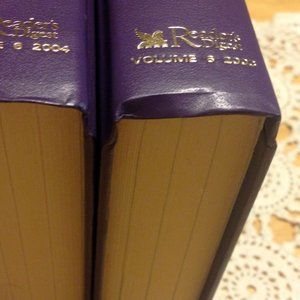 Two deep purple hardback Reader's Digest books, no dust jackets. 2003 and 2004 editions. Very good, clean used condition with light wear at spine, see examples. Includes stories by Frederick Forsyth, Mary Higgins Clark, Barbara Delinsky and more.