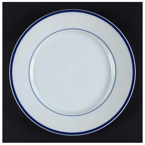 Set of 3 Dinner Plates in White with Blue Band. Made in Poland by Reading China. RDH4. Width: 10 3/8 in. Crafted In Poland. Rare, discontinued. In great condition, no chips, stains or cracks. Light scratches if closely examining in light. No crazing. Non smoking no pet home.