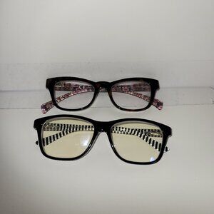 2 pairs of eye glasses. 1 pair of reading glasses, Sparrow focus 1.50 and 1 pair of blue light blocking glasses. Barely used. Almost new condition. Reading glasses are multi-color, and blue light glasses are black and white.