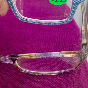 The 2.25 magnification Pear has a denim look effect with a flex spring hinge and is New with tags