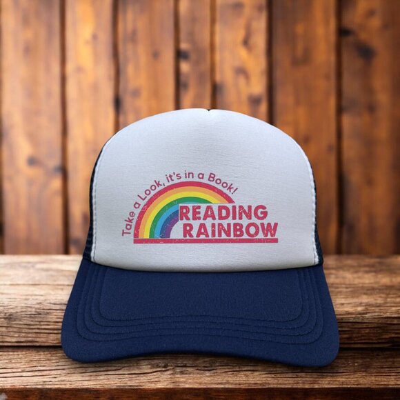 Reading Rainbow Mens Trucker Hat Navy Snapback Take A Look It's In A Book 90s