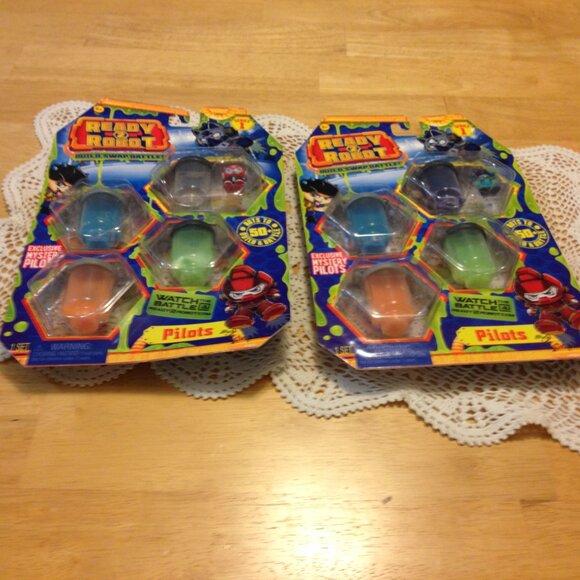 Two new Ready 2 Robot miniature Pilots in slime. For ages 5 and up only. Series one figures in gross slime that kids will love. There is one showing, out of slime. The other 3 are hidden in the slime containers. These are both new but please note that outer cardboard holders have light shelf wear, minor scuffs and surface scratches, not affecting inside toys. Great gift ideas for birthdays or stocking stuffers. nevasdeals