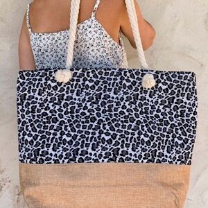 Ready for the Beach 🏖 or Pool. Leopard Tote Bags w/Zipper. Has rope handles & zipper. Plastic like lining to protect bag from wet items. Leopard w/beige bottom-1st pic & Leopard w/Copper color bottom -last pic.