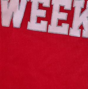 Womens red maroon colored ribbed tank top that says " Ready for the Weekend" (which we all are)