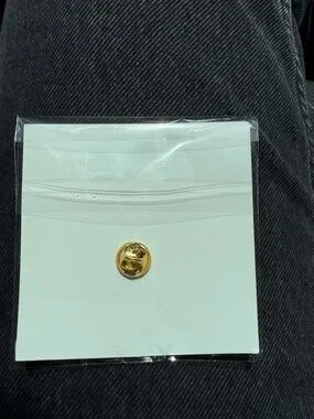 Single gold pin clutch displayed on white card. Polished gold finish. Simple and secure backing for enamel pins.