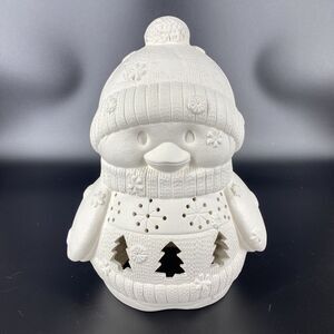 Ready to Paint Ceramic Bisque Penguin with Hat Sweater 10” Holiday Winter Decor