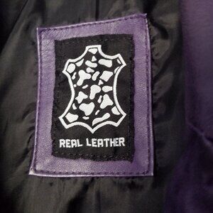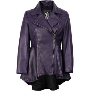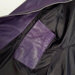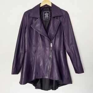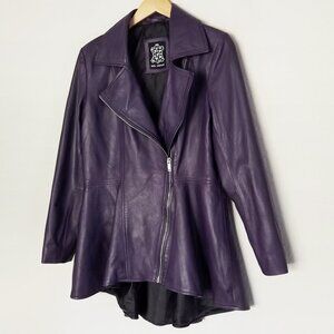 Real 100% Genuine Leather Peplum Long Sleeves Asymmetric Jacket M Purple