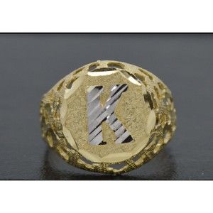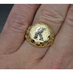 Real 10K Solid Yellow Gold Initial Letter Hip Hop Mens Ring 4.2gr A-Z Sizes 6-11