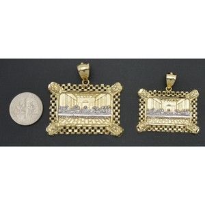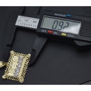 Experience the divine presence with our Real 10K Solid Yellow Gold Shiny Rectangle Railroad Last Supper Jesus Pendant. Crafted with precision, this pendant showcases a detailed Last Supper Jesus design, exuding both elegance and spirituality. Made with 10K solid yellow gold, it offers a lasting shine and durability, perfect for daily wear. Elevate your style and showcase your faith with this beautiful pendant. Makes a meaningful gift for your loved ones. Order now!