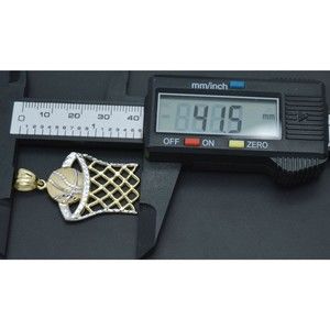 Real 10K Two-Tone Gold 41mm Diamond Cut Basketball Hoop Net Sport Pendant 2.0gr