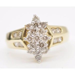 Real 10K Womens Yellow Gold 1.00ct Diamond Cluster Ring Size 7 1/2