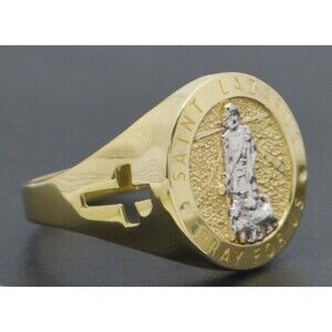 Real 10K Yellow Gold 17mm Mens Saint Christopher Pray For US Ring 4.8g All Sizes
