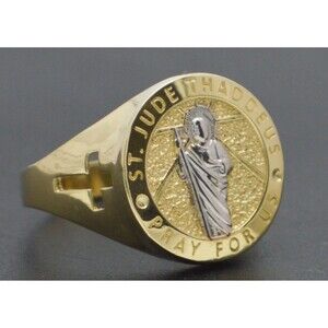 Real 10K Yellow Gold 17mm Mens Saint St Jude Thaddaeus Ring 4.8g All Sizes