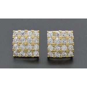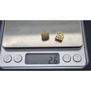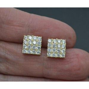 Real 10K Yellow Gold 9.8mm Micro-Pave Square CZ Stud Earrings 2.6gr Men-Women