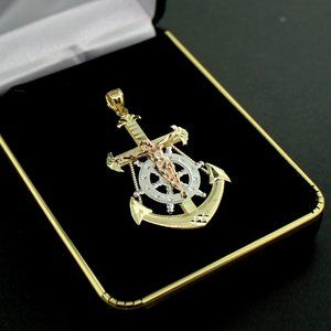 10KT Real Gold Jesus Crucifix Anchor Cross Pendant