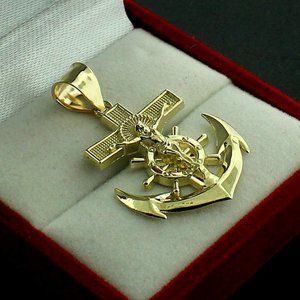 10KT Real Gold Jesus Crucifix Anchor Cross Charm Pendant