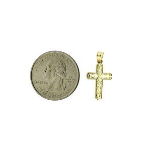 Real 10K Yellow Gold Diamond Cut Cross Pendant