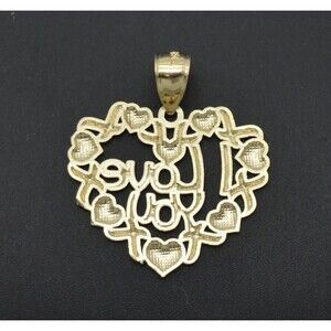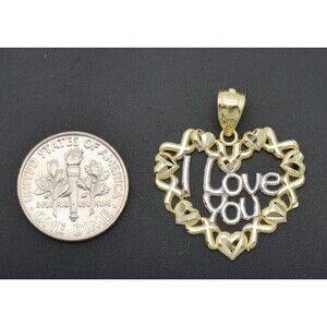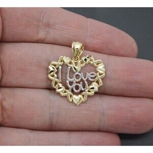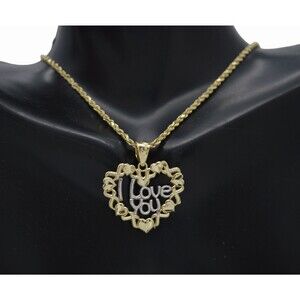 Real 10K Yellow Solid Gold XO Love Heart I Love You Pendant + Rope Chain 16"-24"
