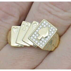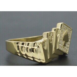 Real 10K Yellow solid Gold Playing Cards Ace of Spades Poker Men Ring All Sizes