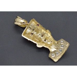 Real 10k Yellow Gold Egyptian King Head Diamond Cut Pendant 3D
