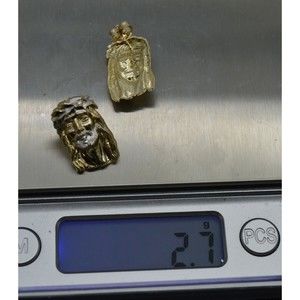 Real 10k Yellow Gold Jesus Head Diamond Cut Stud Earrings 2.7gr
