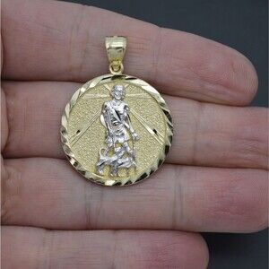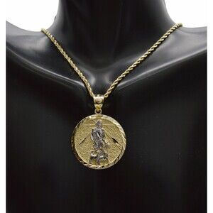Real 10k Yellow Solid Gold Jesus Saint Lazar Medallion Pendant+Rope Chain 16-24"