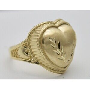 Real 10k Yellow Solid Gold Tree Leaf Design Shiny Heart Shape Ring 3.6 grams
