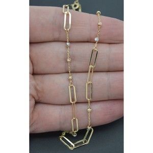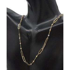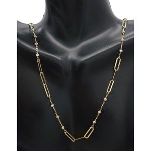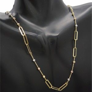 Real 14K Tri-color Gold Beads 16/18" Paperclip & Cable Chain Necklace 3.3 grams