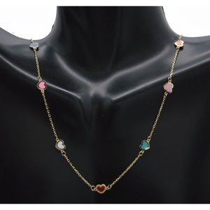 Real 14K Yellow Solid Gold Shiny Multicolor Enamel Hearts Charm Necklace 16"-18"