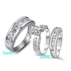 "2pcs Princess Cut Wedding Engagement Ring Set" 2.75, Main stone is about 1 carat big 6x6mm big