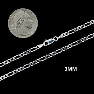 Real Solid 925 Sterling Silver Figaro Chains (Not Plated Silver)