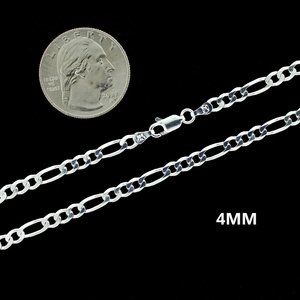 Real Solid 925 Sterling Silver Figaro Chains (Not Plated Silver)