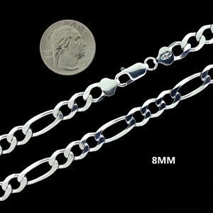 Real 925 SOLID Sterling Silver 8mm Figaro Link Chain Necklace 26" inch