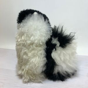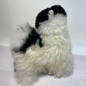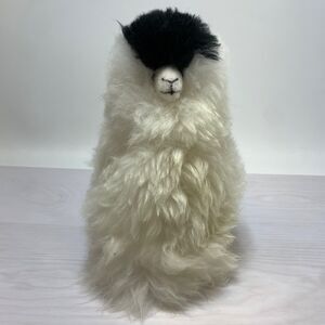 Real Alpaca White Black Plush Stuffed Animal Llama with Natural Fur
